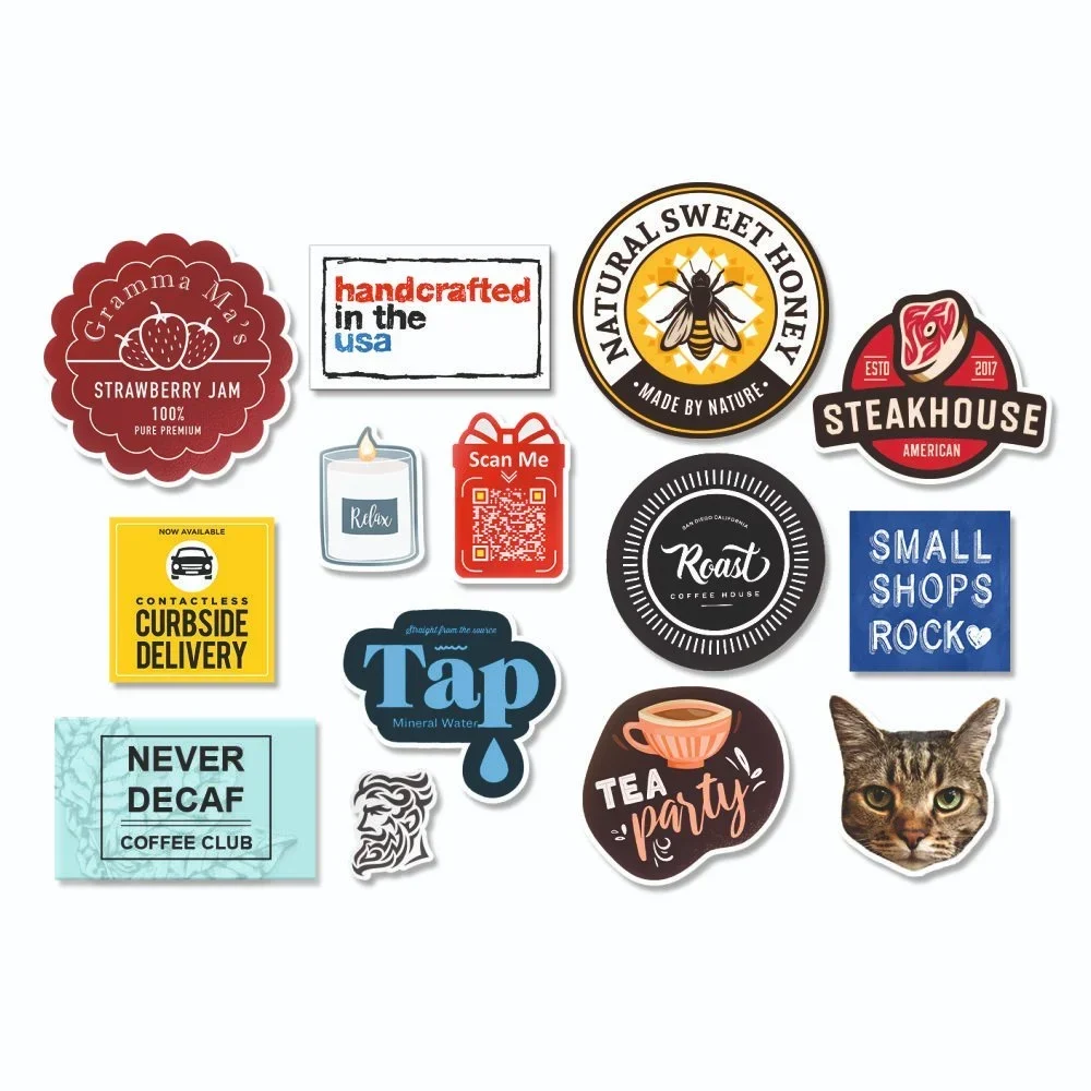 Die-cut, kiss-cut, sheeted, or roll stickers available.