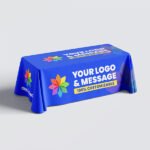 Table covers are custom-printed fabric or polyester coverings that fit standard or custom-sized tables used at events and marketing setups. They serve both functional and branding purposes—covering the tabletop and legs while showcasing logos, graphics, and messaging in a clean and visually appealing way.