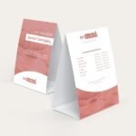 Tent cards are folded, self-standing printed displays typically placed on tables, counters, desks, or reception areas. Printed on high-quality cardstock or durable materials, they feature eye-catching graphics and messaging that can be read from one or both sides.